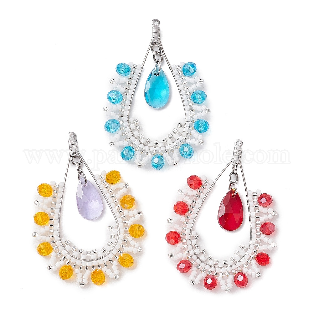 Подвески-слезинки из стекла ручной работы, с 304 фурнитурой из нержавеющей стали (02YBYG)