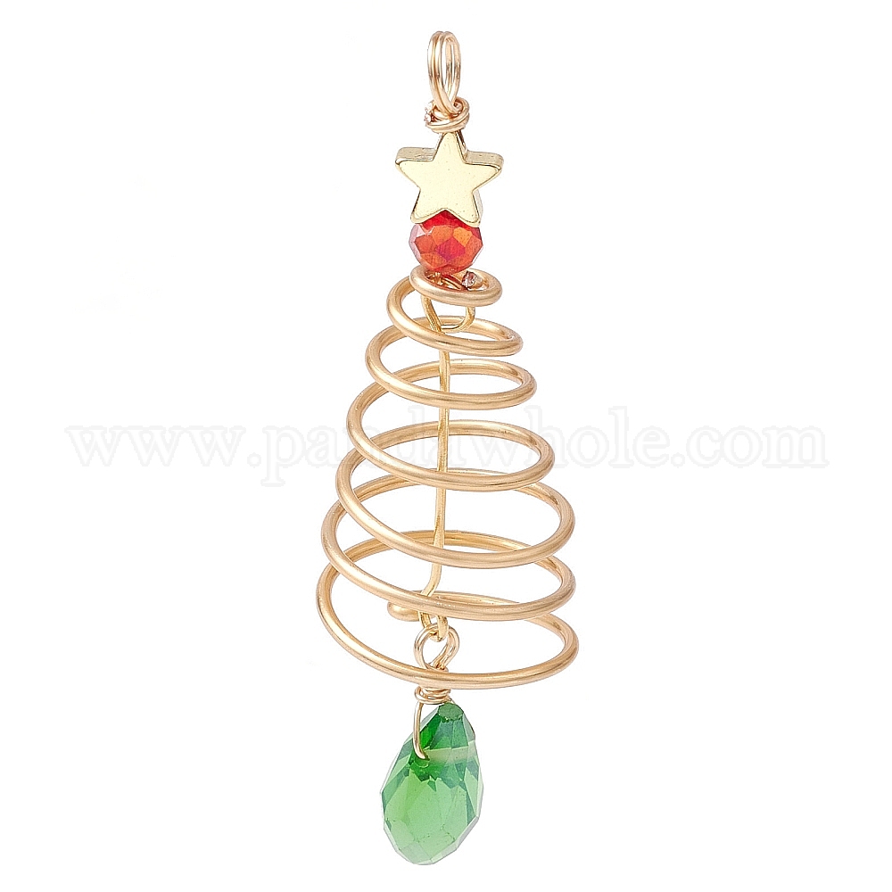 Большие подвески из латуни и стекла, с медной проволокой, Рождественская елка со звездой