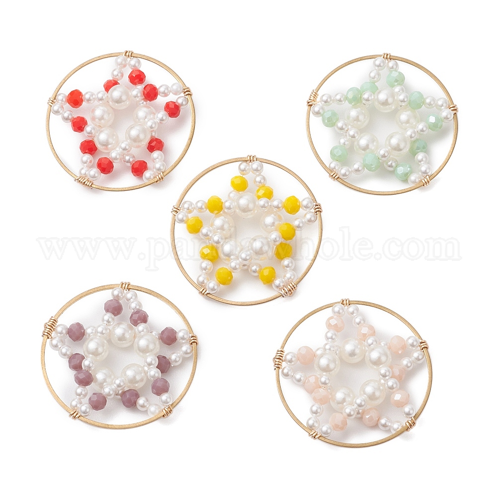Стеклянные подвески, с бусинами из ракушечного жемчуга и золотыми латунными кольцами, плоские круглые со звездой