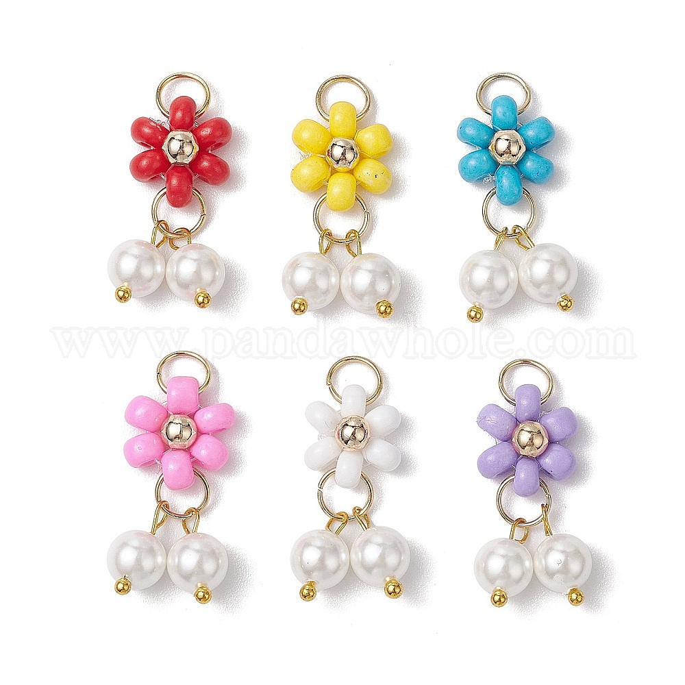 6 шт 6 цвета краска для выпечки стеклянные подвески-семечки, с бусинами из ракушечного жемчуга и золотыми 304 петлями из нержавеющей стали и латунной фурнитурой, цветок