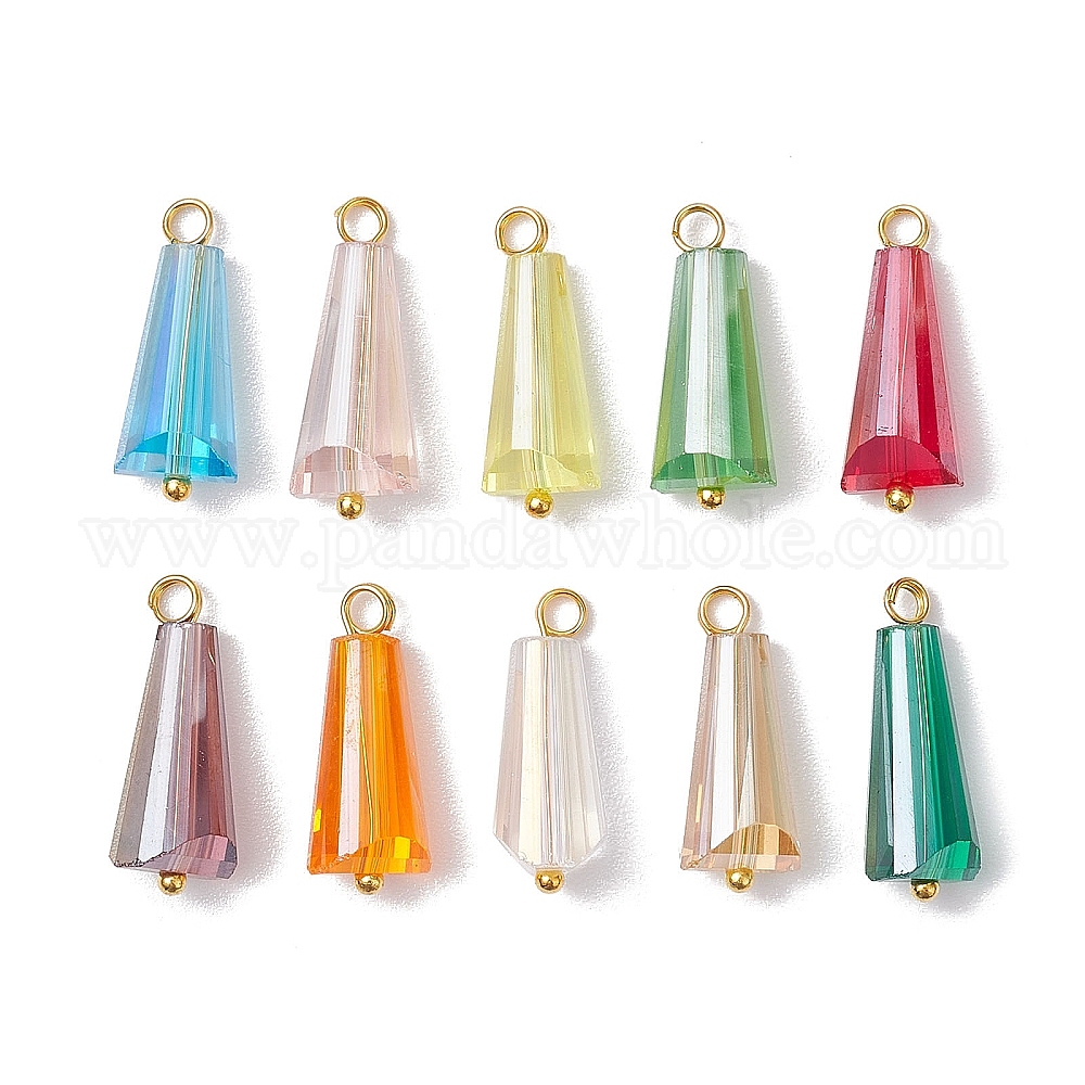 10 шт. Стеклянные подвески, с латунной фурнитурой , конус