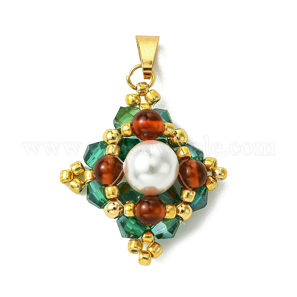 Подвески в форме ромба из стеклянного бисера, с натуральными бусинами из сердолика и бусинами из ракушечного жемчуга