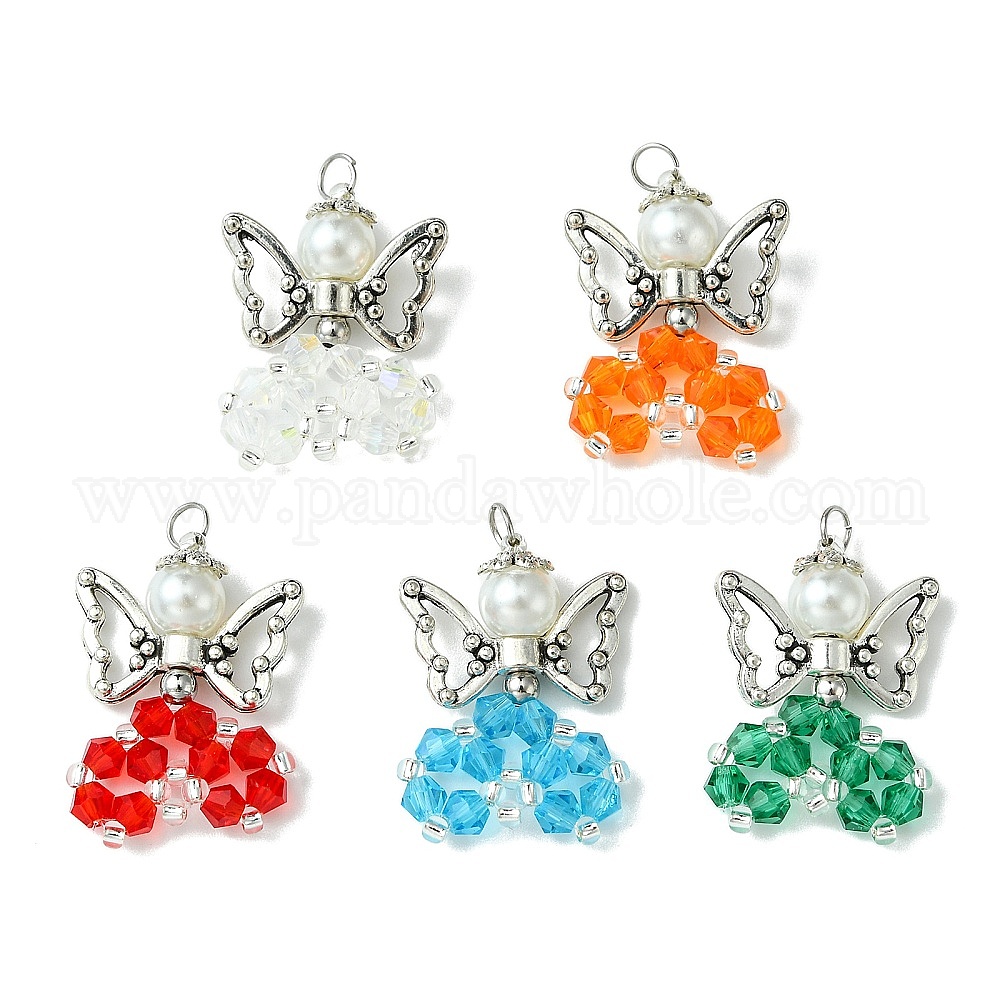 Подвески из перламутровых стеклянных бусин, с крыльями из цинкового сплава и бисером, ангел