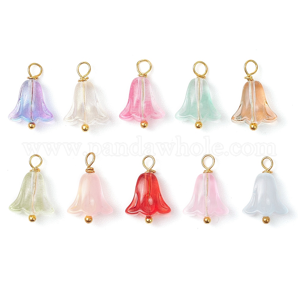 20шт. стеклянные бусины подвески, с золотистой латунной петлей, колокольчик