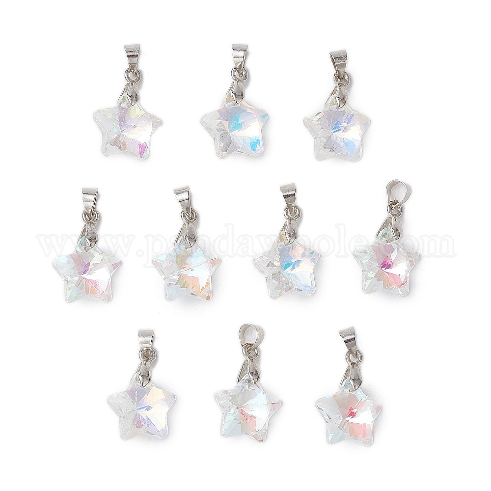 10 шт. Стеклянные подвески, с платиновыми латунными скобами для ледоруба, граненые, звезда