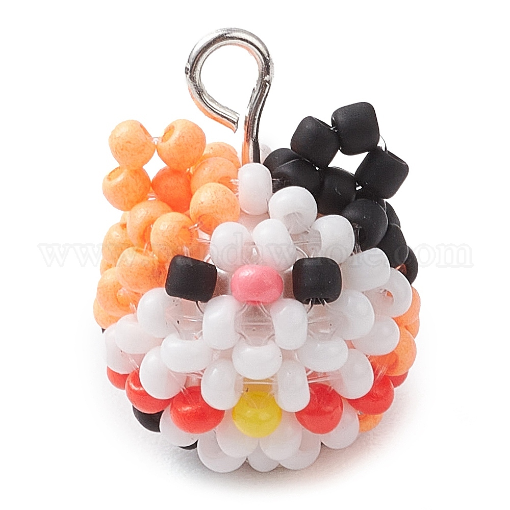 Подвески в виде кошек из бисера, подвески из бисера, с железными петлями