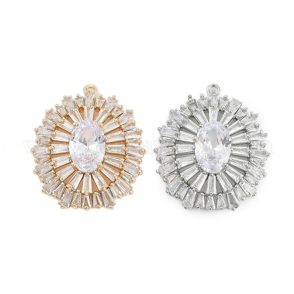 • Настоящее золото 18K Латунные подвески, овальные амулеты, со стеклом, реальный 18 k позолоченный, 30x26x7.5 мм, отверстие : 1.5 мм