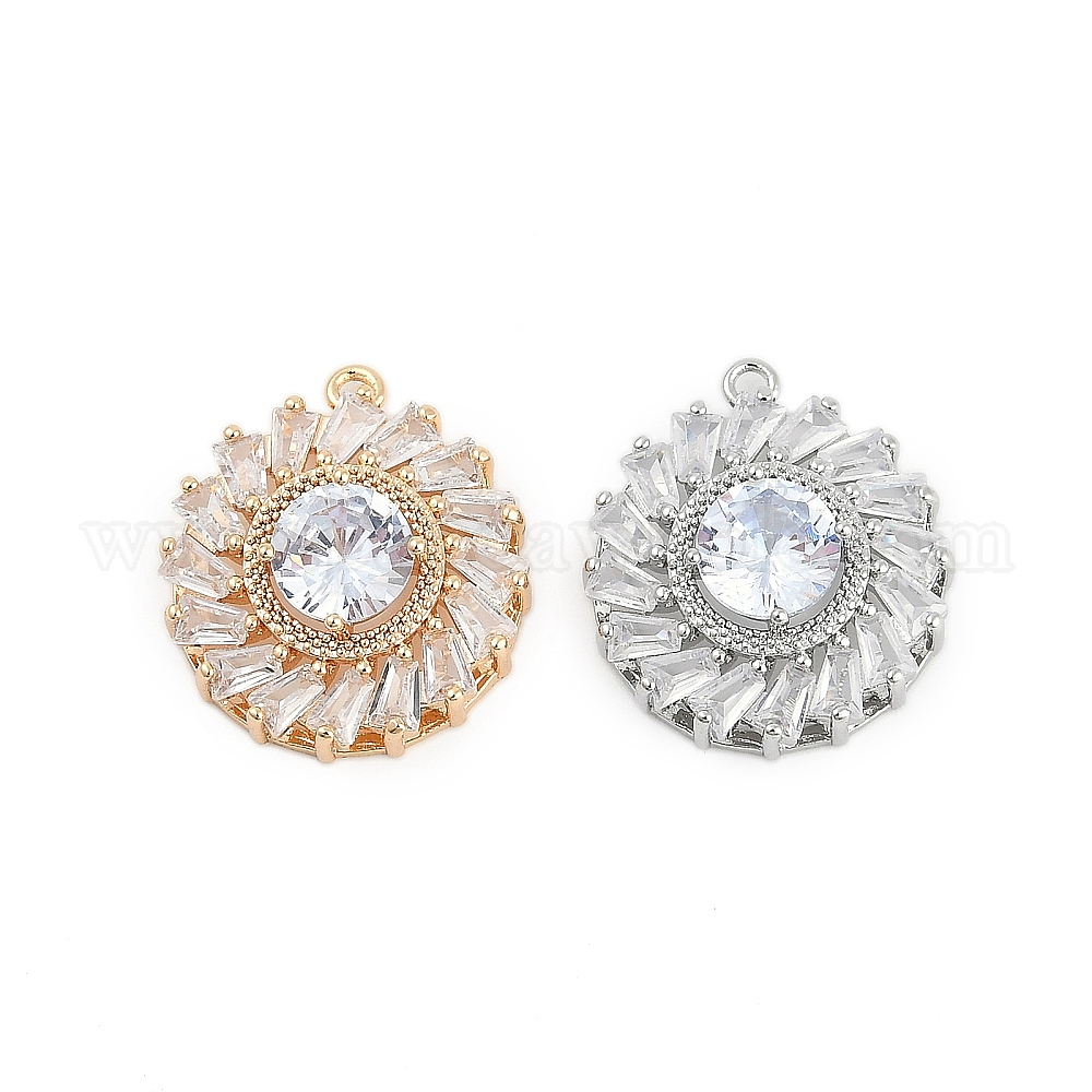 Латунные подвески, плоские круглые прелести, со стеклом (02ZCPJ)