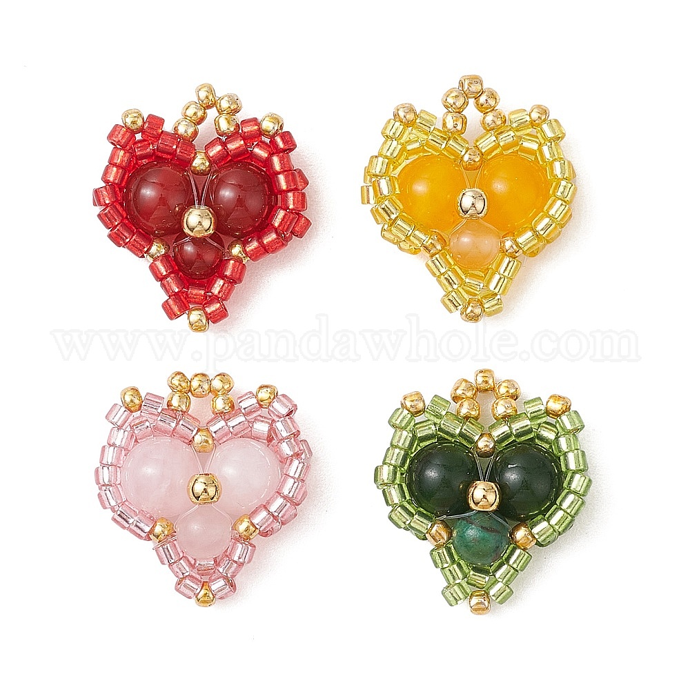 Подвески в форме сердца из стеклянных бусин, с природными драгоценный камень бисером