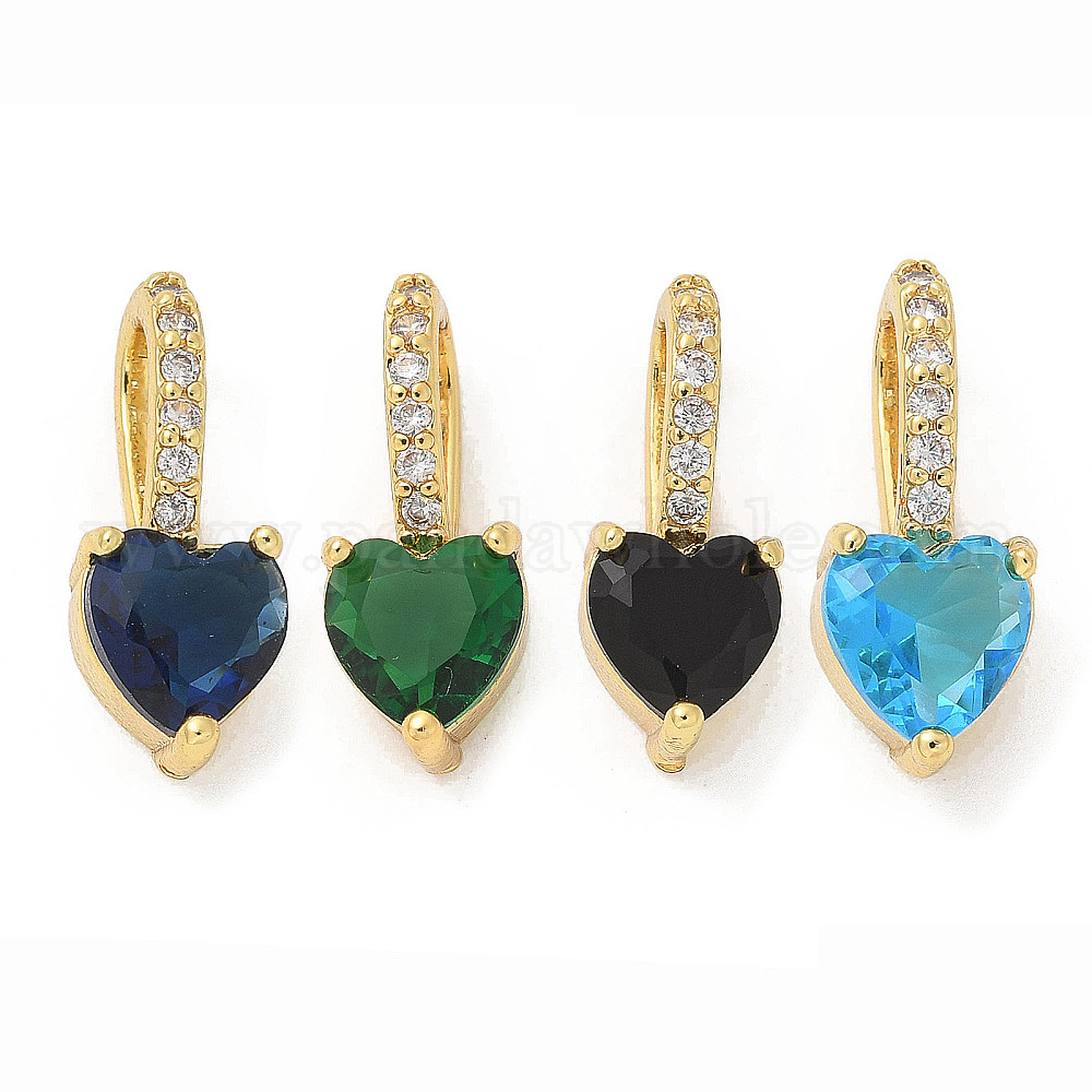 Латунь стекло кулоны, сердце прелести, с кубического циркония, стойки покрытие, без свинца и без кадмия, долговечный, реальный 18 k позолоченный