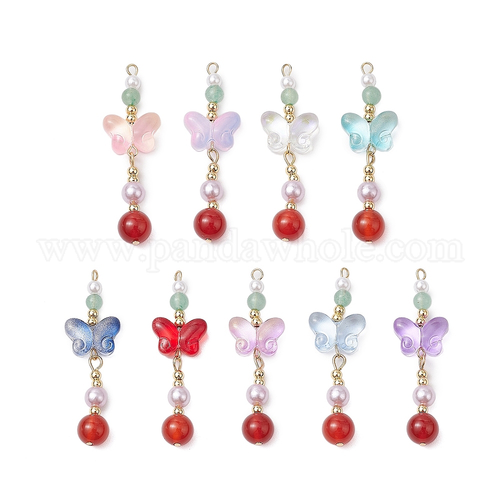 Подвески из натурального сердолика и стекла, бабочка, с золотистой латунной петлей