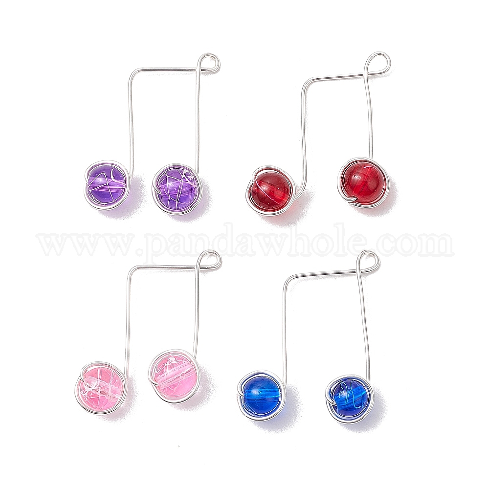 • (52) Непрозрачная лаванда Подвески из прозрачного стекла с медной проволокой, прелести музыкальных нот, разноцветные, 34~36x29~30x8 мм, отверстие : 3.5x2.5 мм
