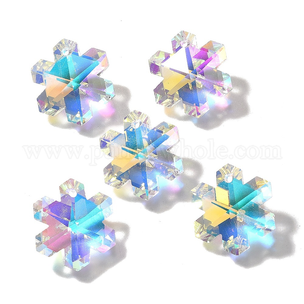 • Прозрачный АВ Стеклянные подвески, снежинка, AB цвет, граненые, ясно AB, 20x17.5x9 мм, отверстие : 1.4 мм