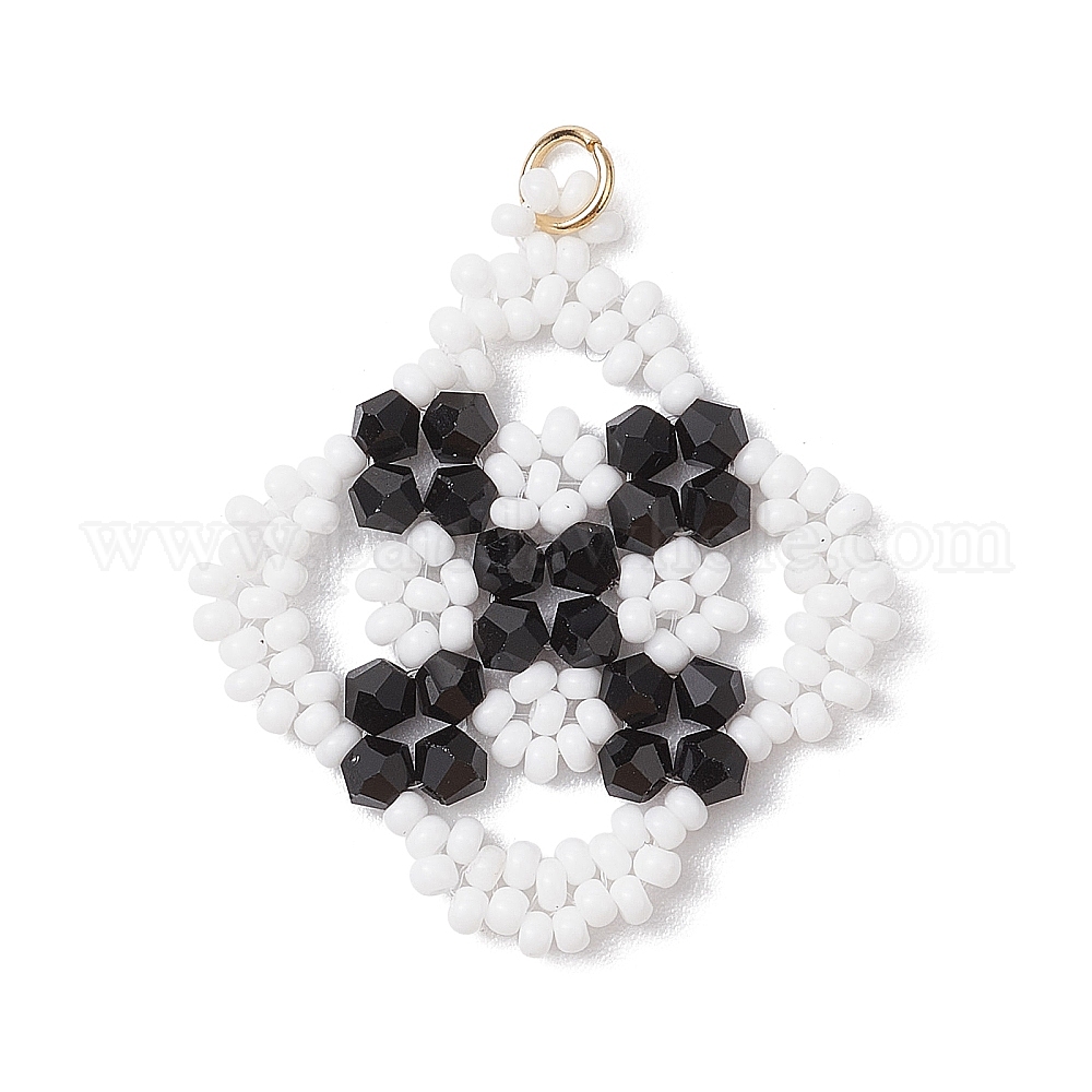 Подвески-ромбы из стеклянного бисера ручной работы, с 304 соединительным кольцом из нержавеющей стали и биконусными стеклянными бусинами, имитирующими австрийский хрусталь