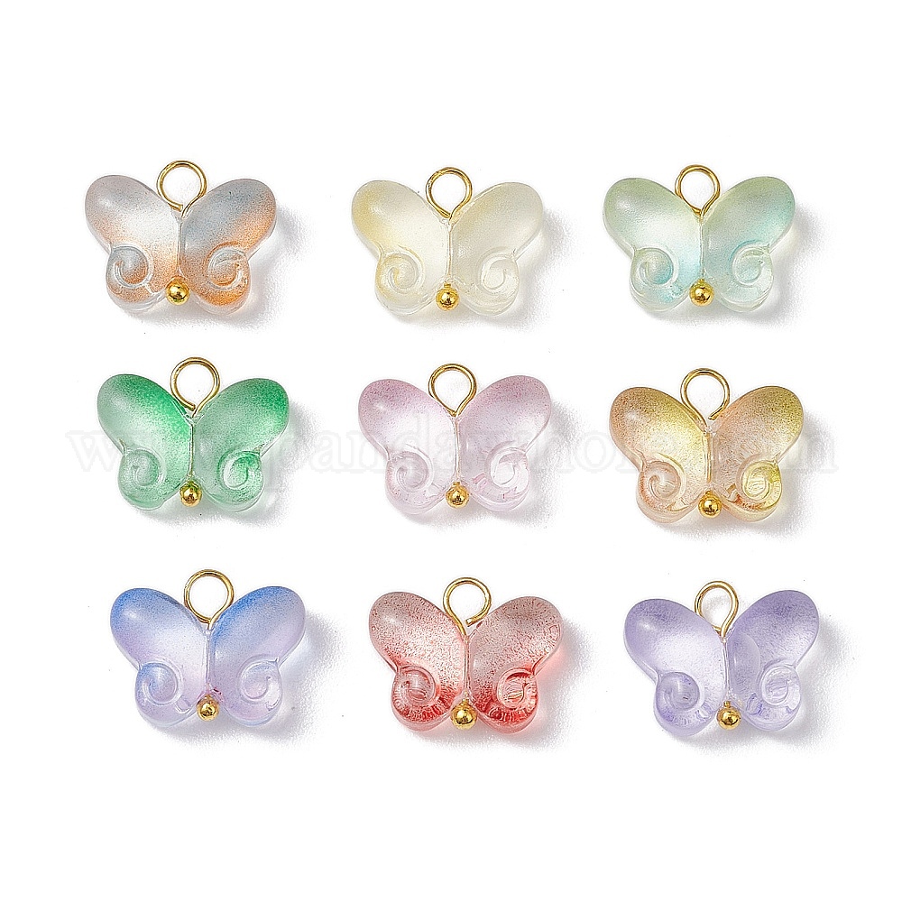 Бабочка градиент цвета краска для выпечки прозрачные стеклянные подвески, с латунными петлями с шарообразными головками