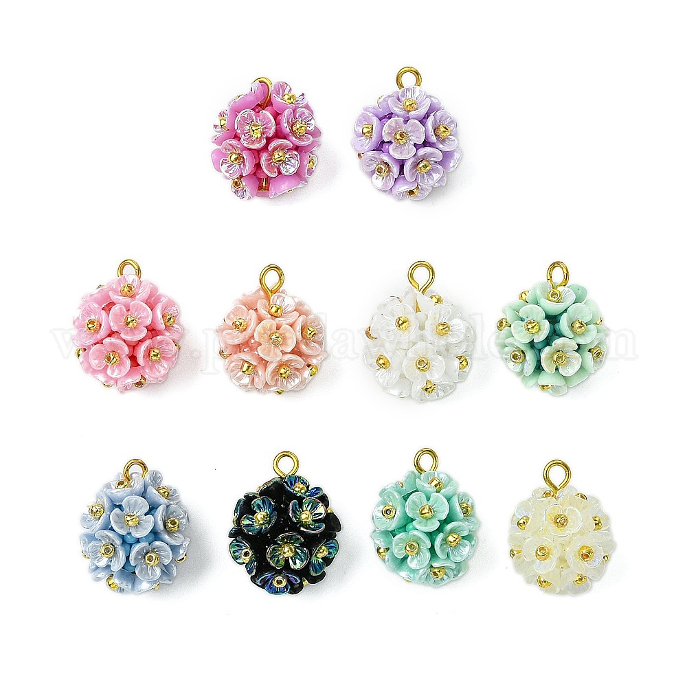 10шт. подвески-цветы из стеклянных бусинок, со смолой и петлей