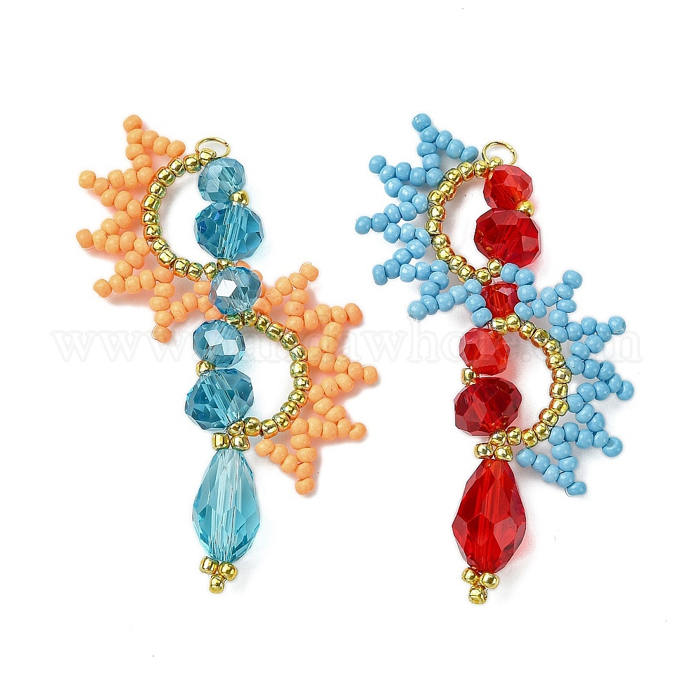 Подвески-дуги из стеклянных бусинок, со стеклом и петлей
