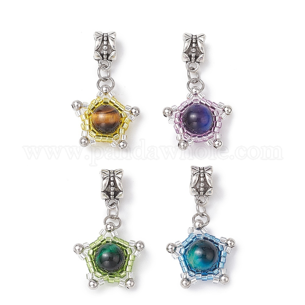• (52) Непрозрачная лаванда Подвески из бисера цилиндрической формы и натурального тигрового глаза, звезда, разноцветные, 34x19x8~9 мм, отверстие : 5 мм