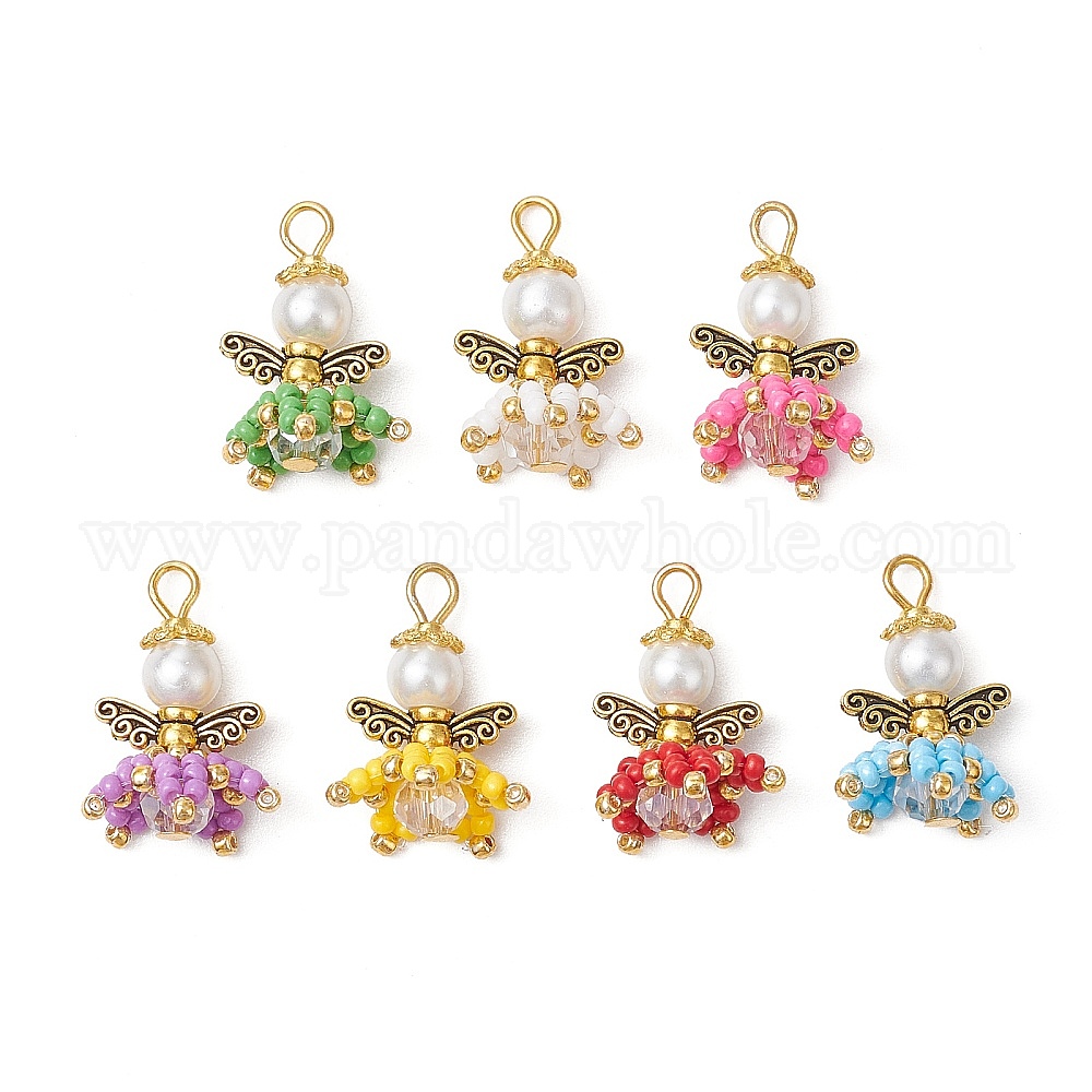 Подвески из нейлоновой проволоки, стеклянные бусины ручной работы с бусинами из сплава и стеклянными жемчужными бусинами, ангел