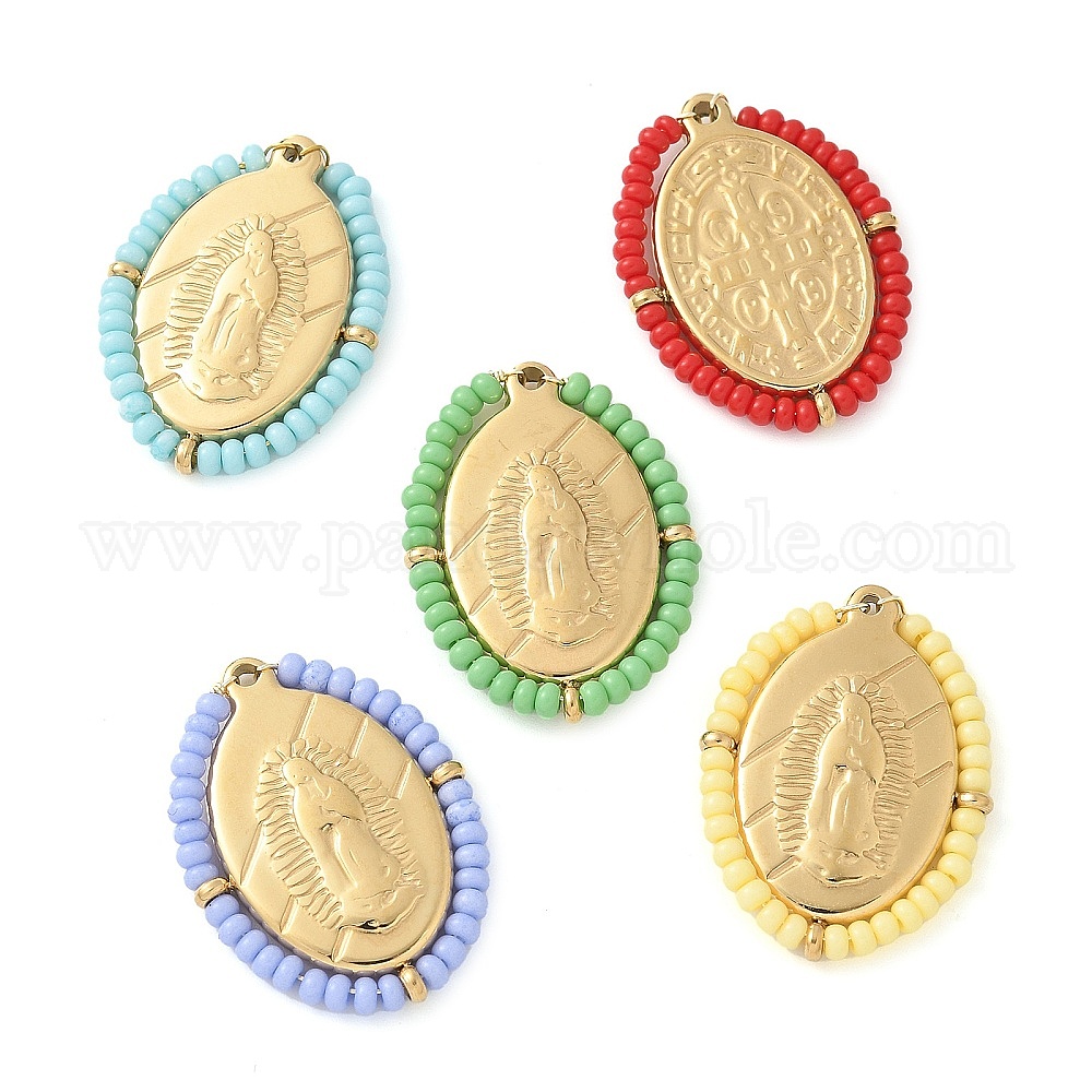304 прелести нержавеющей стали, овальные с Иисусом, со стеклянными бисеринами, реальный 14 k позолоченный