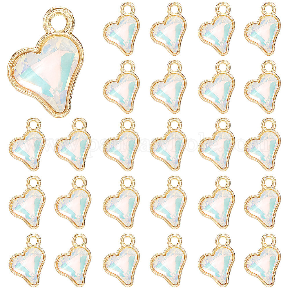 64 стеклянные брелоки шт., сердце прелести, со сплавочной фурнитурой, граненые