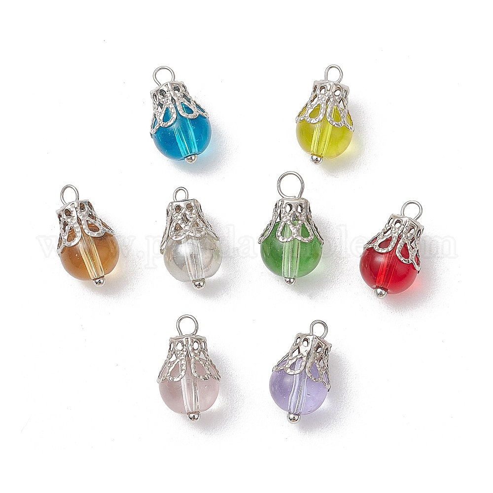 8шт. 8 цвета стеклянные подвески, круглые, с платиновым железным шариком