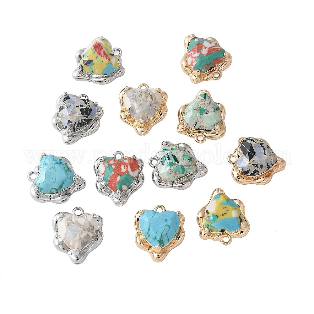 Латунь стекло амулеты, сердце прелести, граненые (031E9Q)