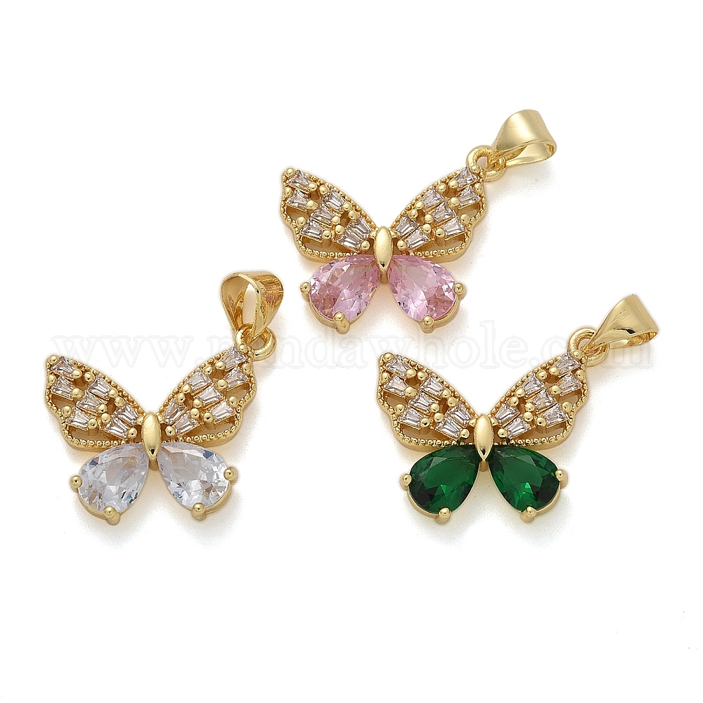 Латунь стекло кулоны, бабочка, стойки покрытие, долговечный, без свинца и без кадмия, реальный 18 k позолоченный, граненые