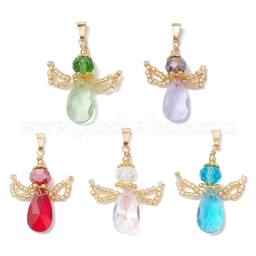 Стеклянные подвески, ангельские прелести, с латунной бусиной и стеклянным бисером, граненые