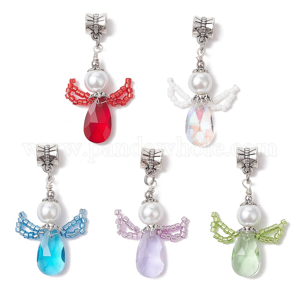 Стеклянные подвески, ангельские прелести, со стеклянной жемчужной бусиной и 304 шовными бусинами из нержавеющей стали и трубчатыми дужками из сплава в тибетском стиле, граненые