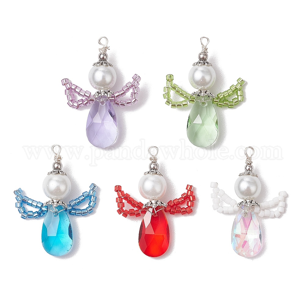 Стеклянные подвески, ангельские прелести, со стеклянной жемчужной бусиной и 304 шовными бусинами из нержавеющей стали и петлей, граненые