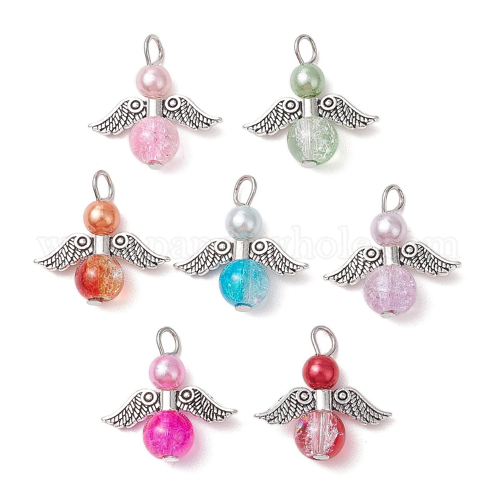 7шт 7 цвета прозрачные хрустальные стеклянные подвески, ангельские прелести, с петлей из сплава (031KAF)