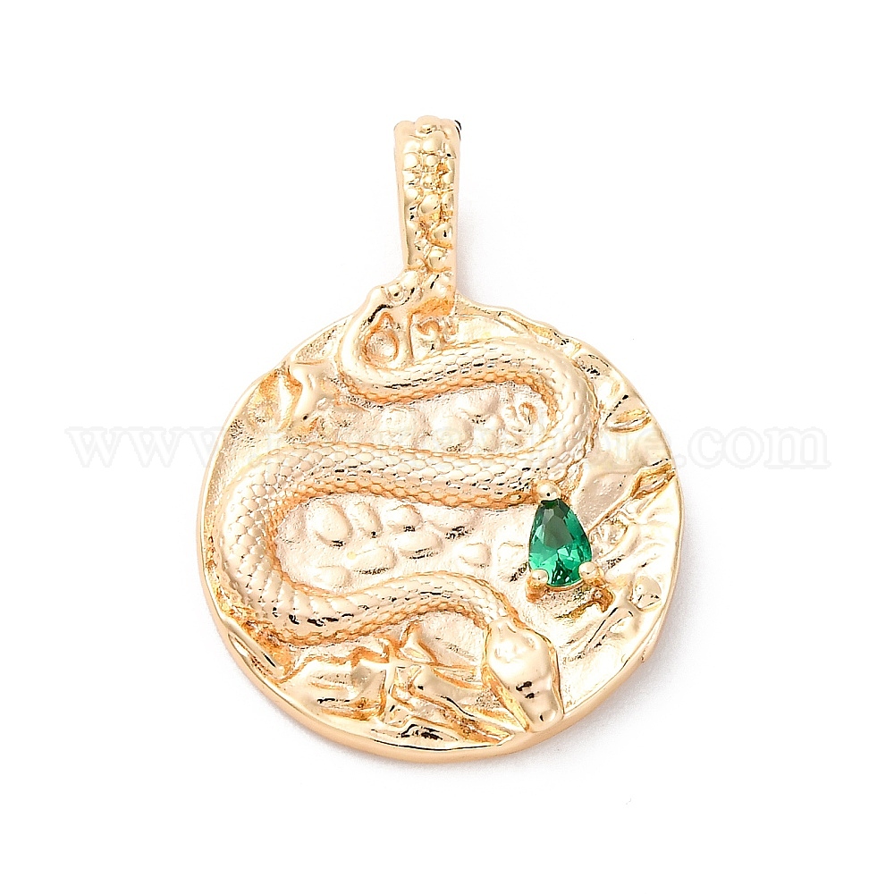 Латунь стекло кулоны, плоские круглые со змеей