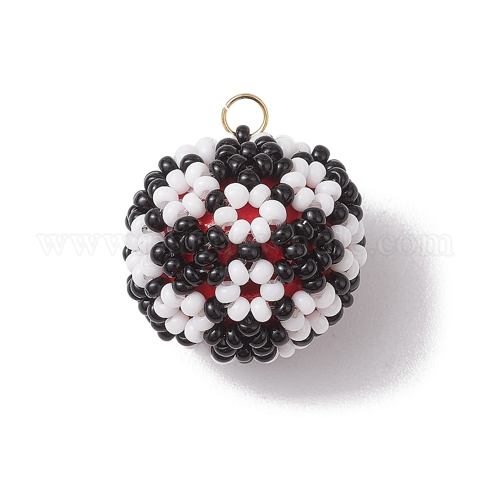 Подвески из стеклянного бисера в виде футбольного мяча, с деревянной бусиной и 304 кольцами из нержавеющей стали
