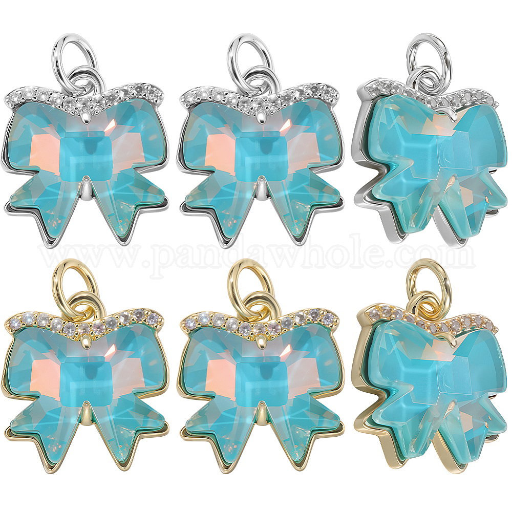 6 шт. 2 цвета латунные подвески из фианита с микропаве, бантом, со стеклом и петлей, долгоиграющий, без свинца и без кадмия, граненые