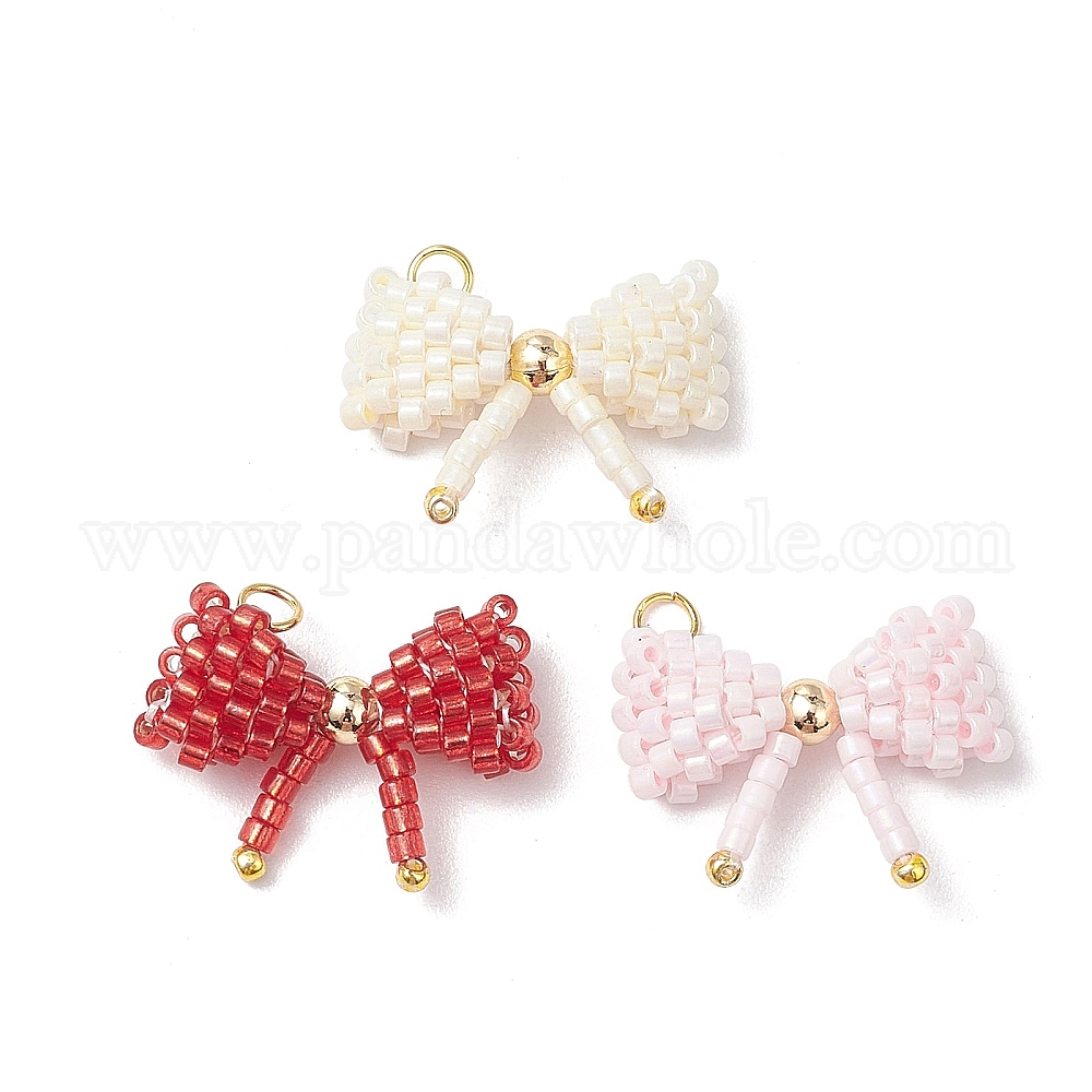 Подвески-бантики из стеклянных бус, с 304 соединительными кольцами из нержавеющей стали и латунными проставками (031RGS)