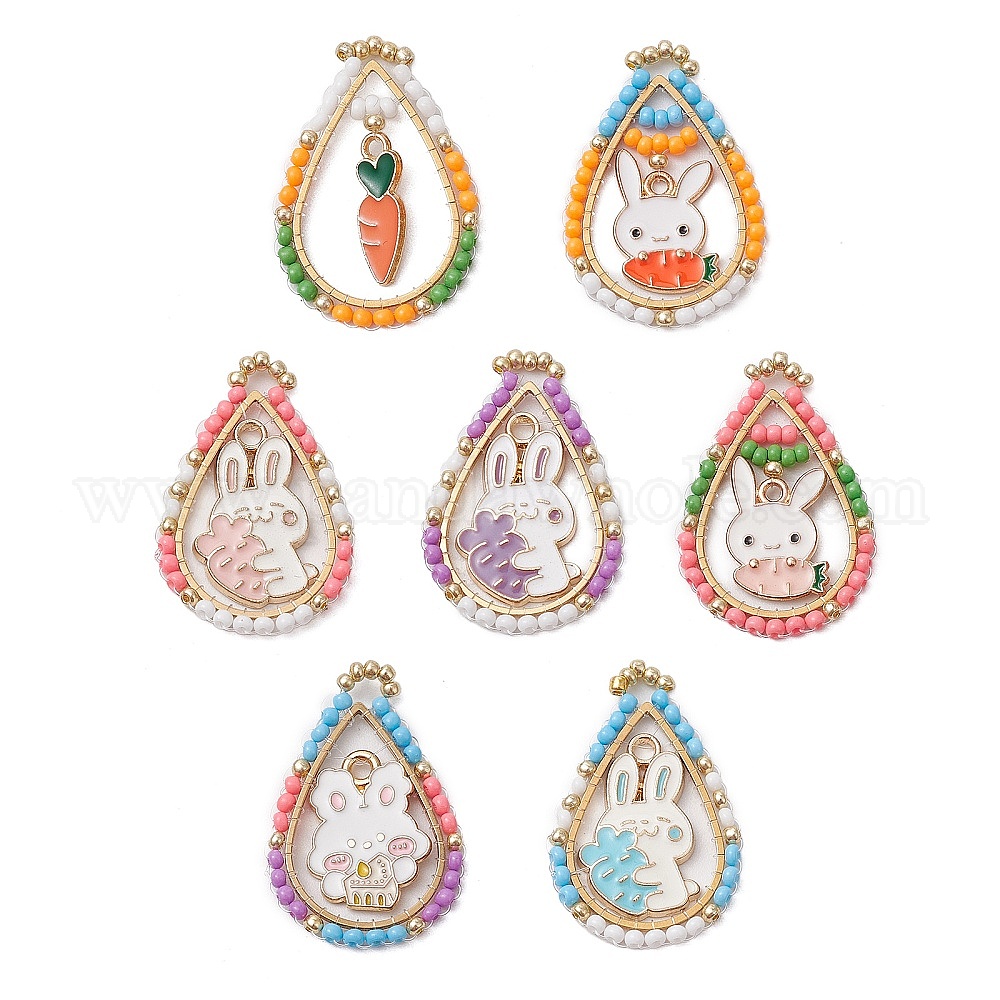 7 шт 7 стили пасхальная тематика стеклянные бусины каплевидной формы с подвесками в виде морковки-кролика, Подвески из эмали и сплава, с золотыми 201 соединительными кольцами из нержавеющей стали
