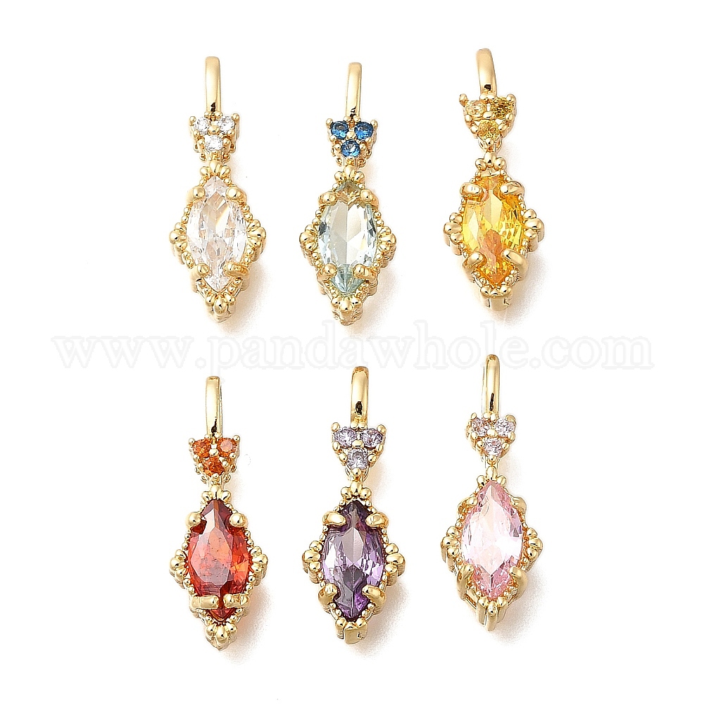 Латунь стекло кулоны, ромб с сердечками, реальный 14 k позолоченный, граненые