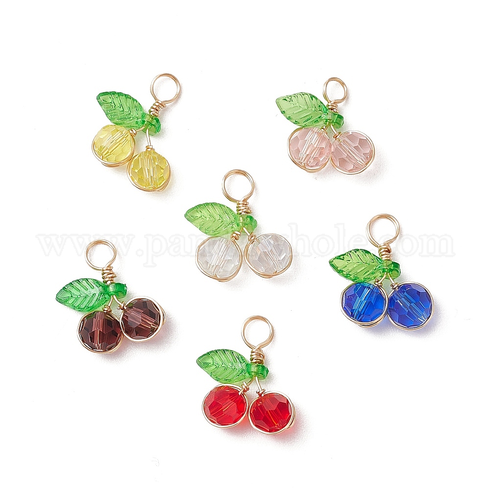• Прозрачный Подвески из вишневого стекла, с медной проволокой светло-золотистого цвета и акрилом, граненый(32 граненый), прозрачные, 16.5x15x5.5 мм, отверстие : 3.5 мм