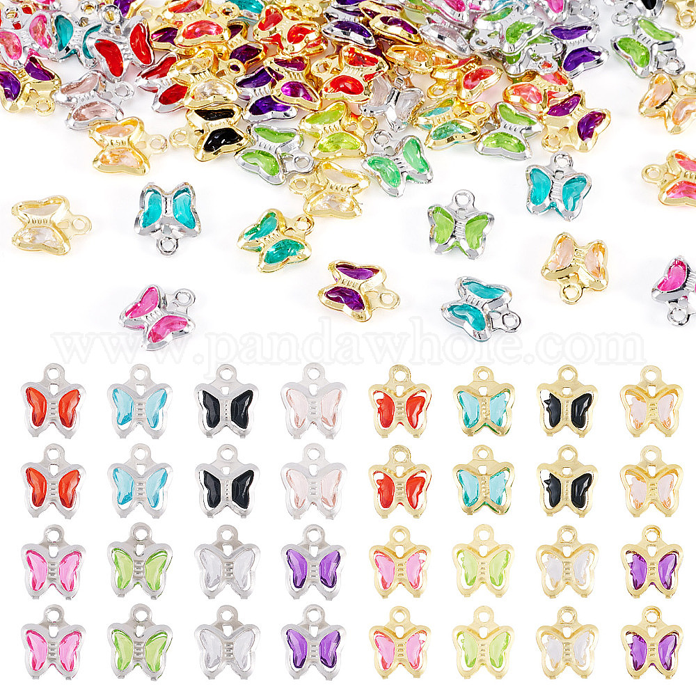 60шт. 2 цвета стеклянные подвески, бабочка, с латунной фурнитурой
