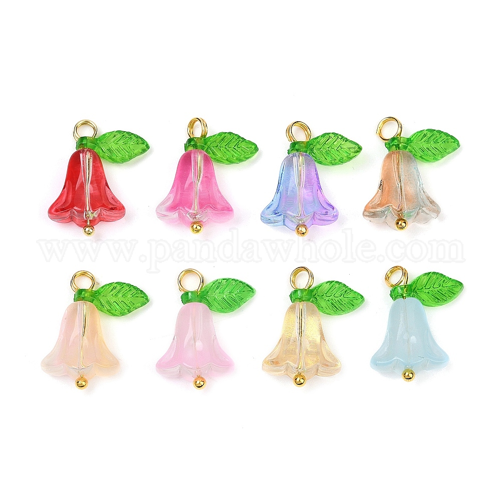 8 шт 8 цвета стеклянные подвески, тюльпан с листом, с акриловыми подвесками и латунными булавками с шарообразными головками