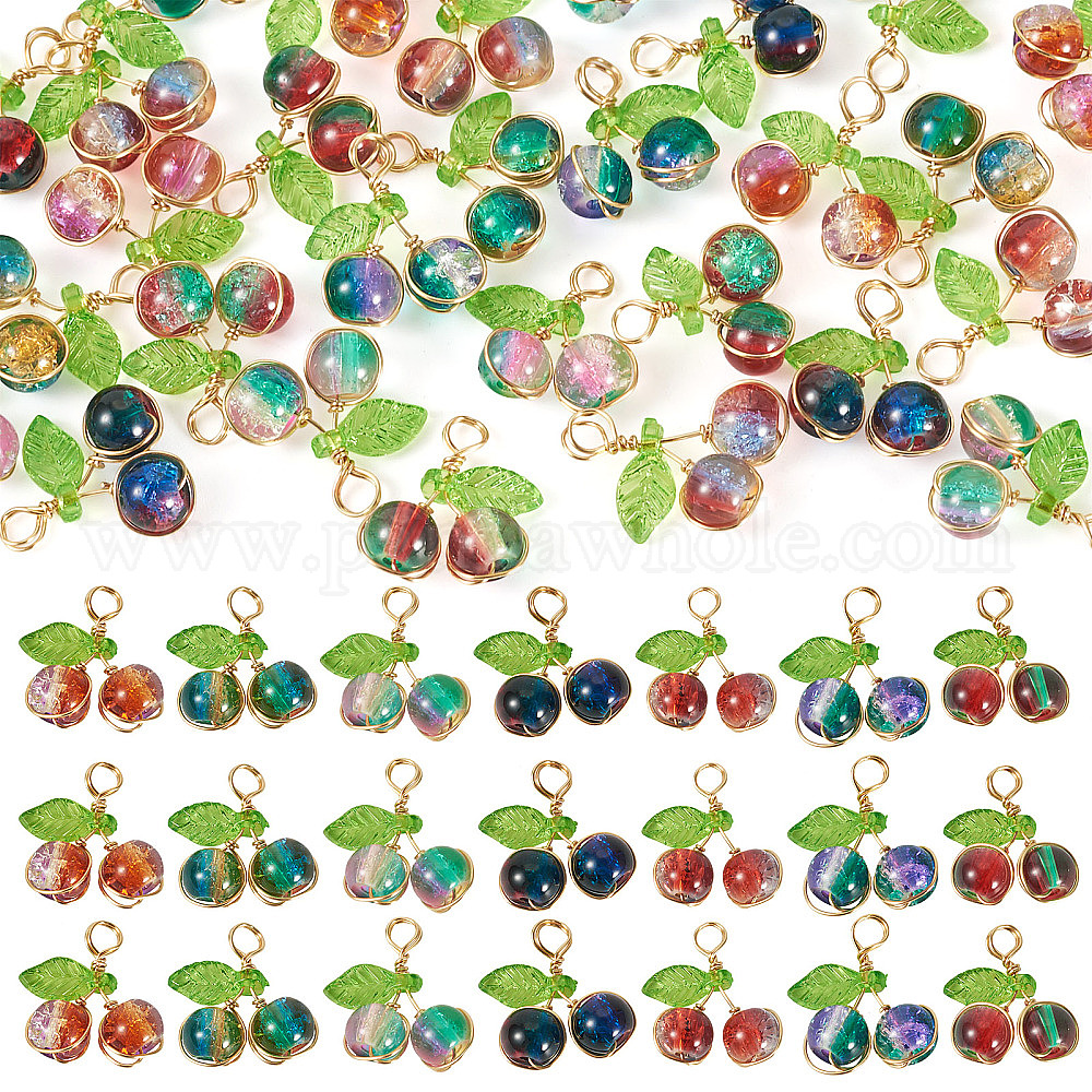 28шт 7 цвета хрустальные стеклянные подвески, вишня, с акриловой и золотисто-медной проволокой, два тона