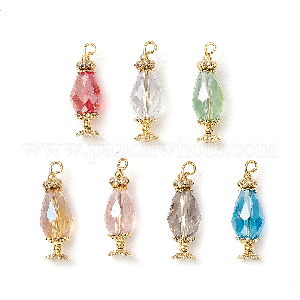 Подвески гальванизируйте стекла, слезинки, с настоящими 18k позолоченными колпачками из сплава бусин, латунными бусинами и петлей из золотистого железа с плоскими головками, граненые