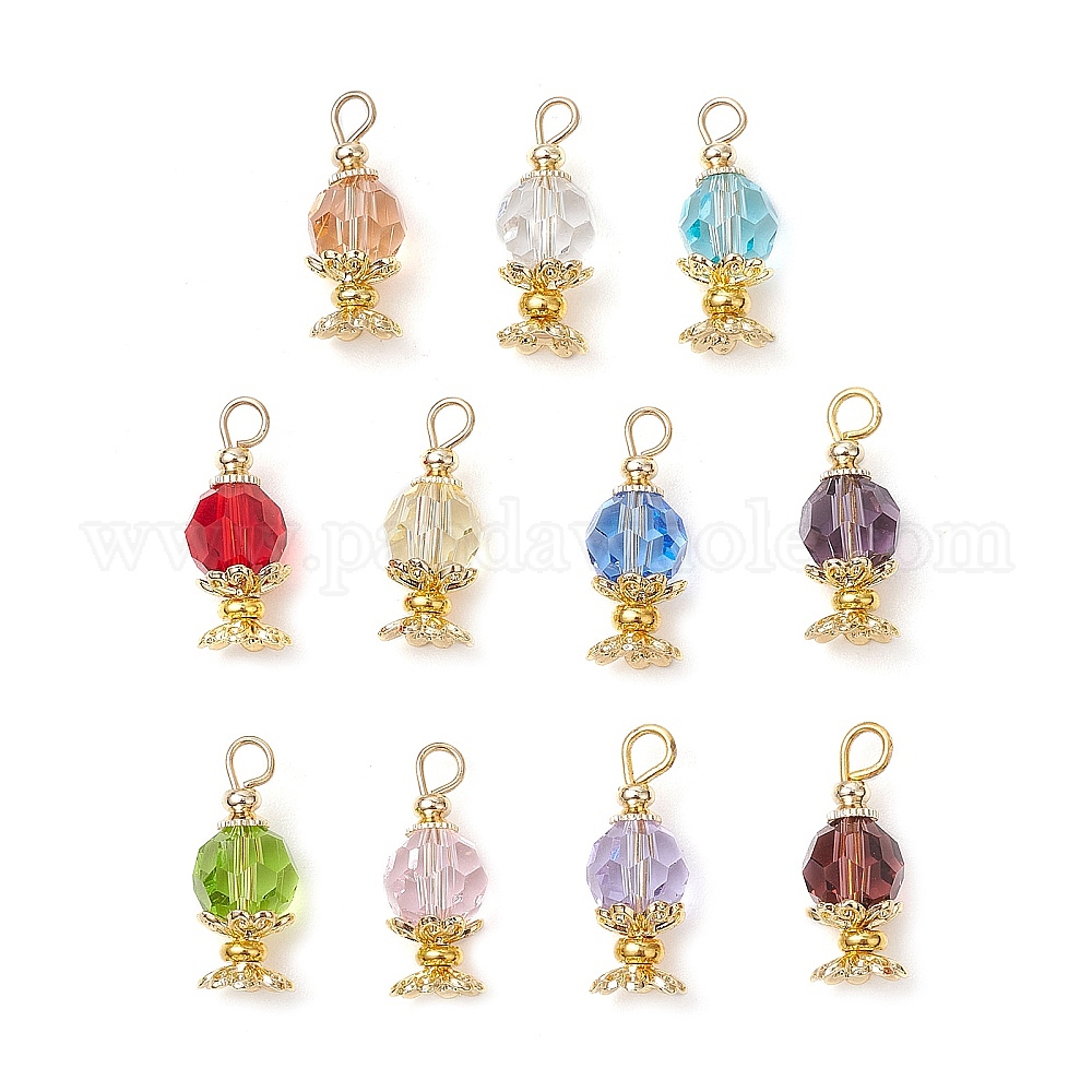 Подвески из искусственного австрийского хрусталя k9, круглые, с настоящими 18k позолоченными колпачками из сплава бусин и латунными разделительными бусинами и 304 петлей из плоских головок из нержавеющей стали, граненые