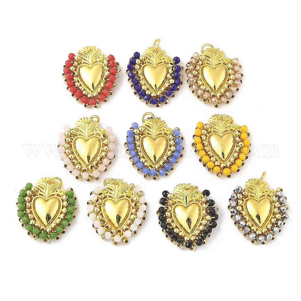 • Средний Морско-зеленый Сплав стекла подвески, сердце, с петлей, долговечный, без кадмия и без свинца, стойки покрытие, реальный 18 k позолоченный, средний морской зеленый, 31x28x7.5 мм, отверстие : 5.6 мм