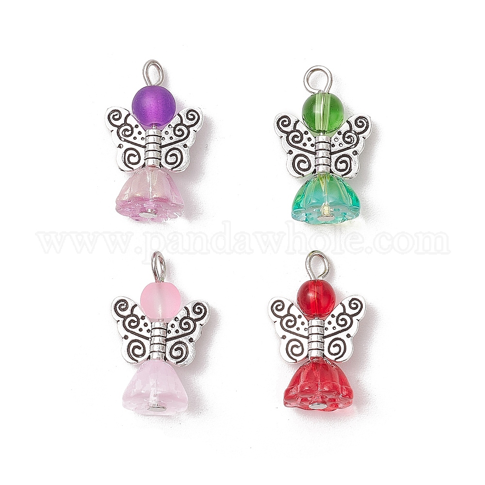 • (52) Непрозрачная лаванда Прозрачные стеклянные подвески, с фурнитурой сплавочной тибетского стиля, ангел и стручок лотоса, античное серебро, разноцветные, 24.5x15x10 мм, отверстие : 2 мм