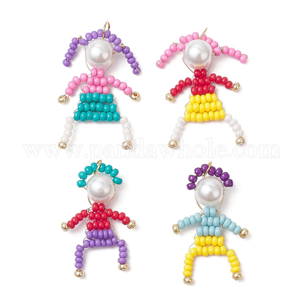 Стеклянный бисер с круглыми стеклянными бусинами в виде людей, с 304 петлей из нержавеющей стали