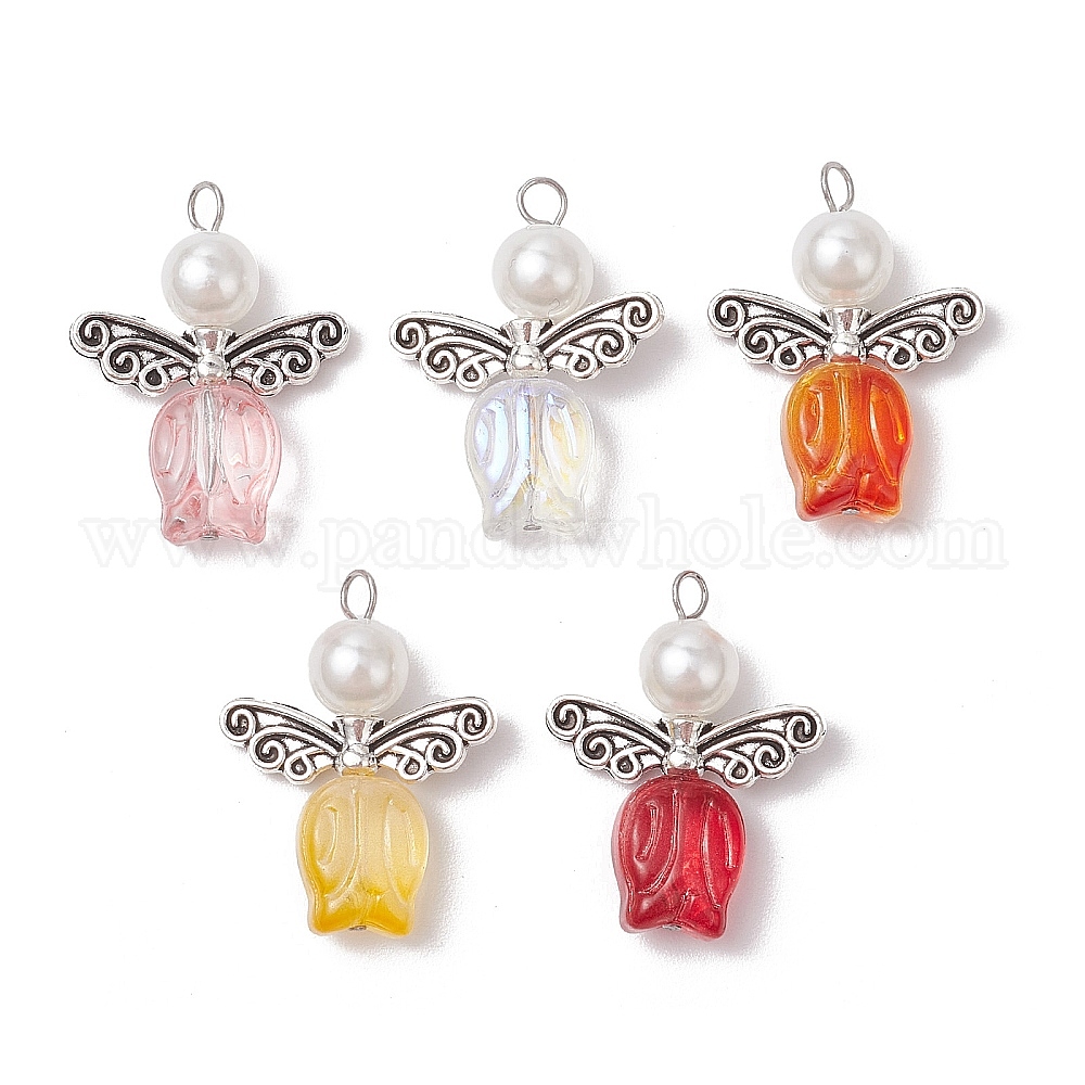 Прозрачные стеклянные бусины с бусинами из сплава и АБС-пластика, имитация круглых бусин с жемчугом и 304 плоские головки штифтов из нержавеющей стали подвески, ангел