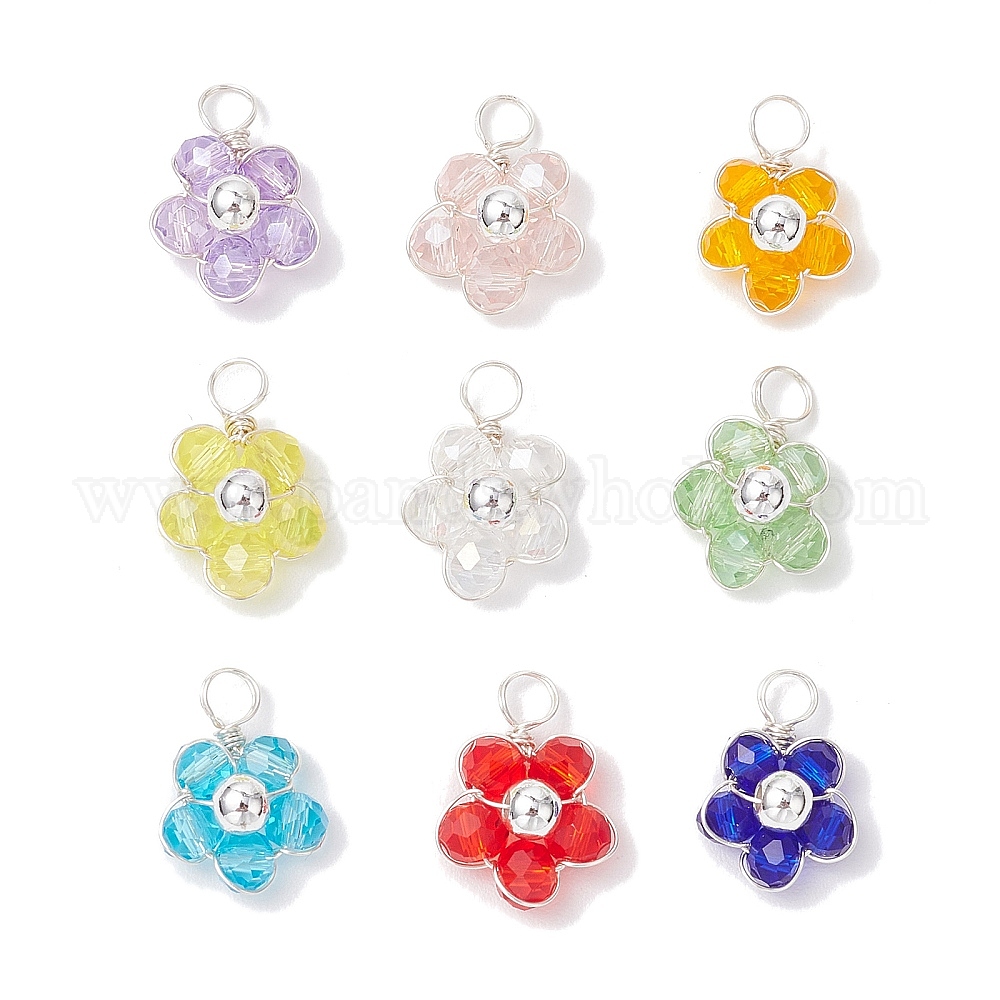 9шт 9 цвета граненые стеклянные круглые бусины подвески, цветок, с медной проволокой, стойки покрытие