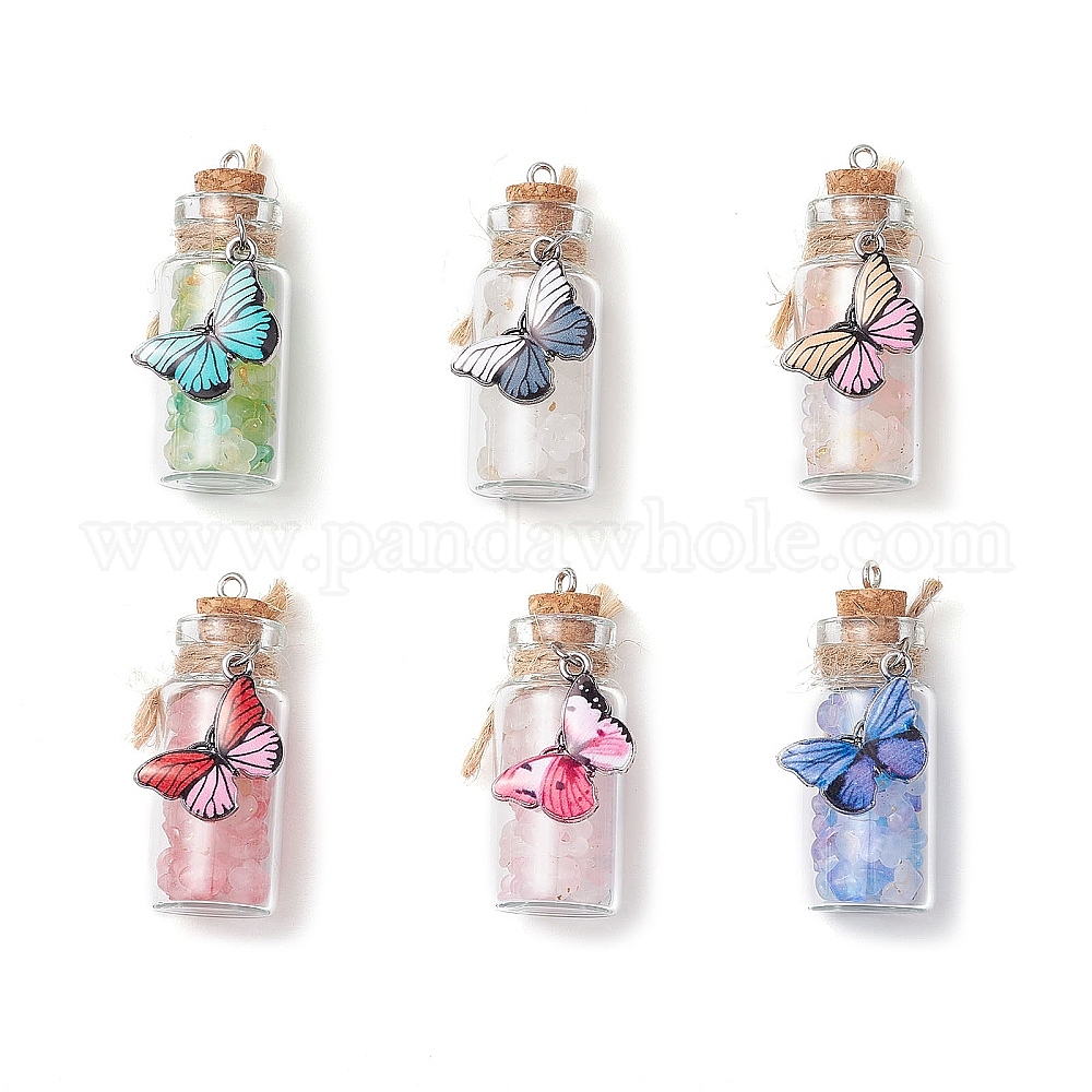 6 шт. Стеклянные подвески, подвеска на бутылку желаний, с акриловыми бусинами внутри и подвесками-бабочками из эмалевого сплава